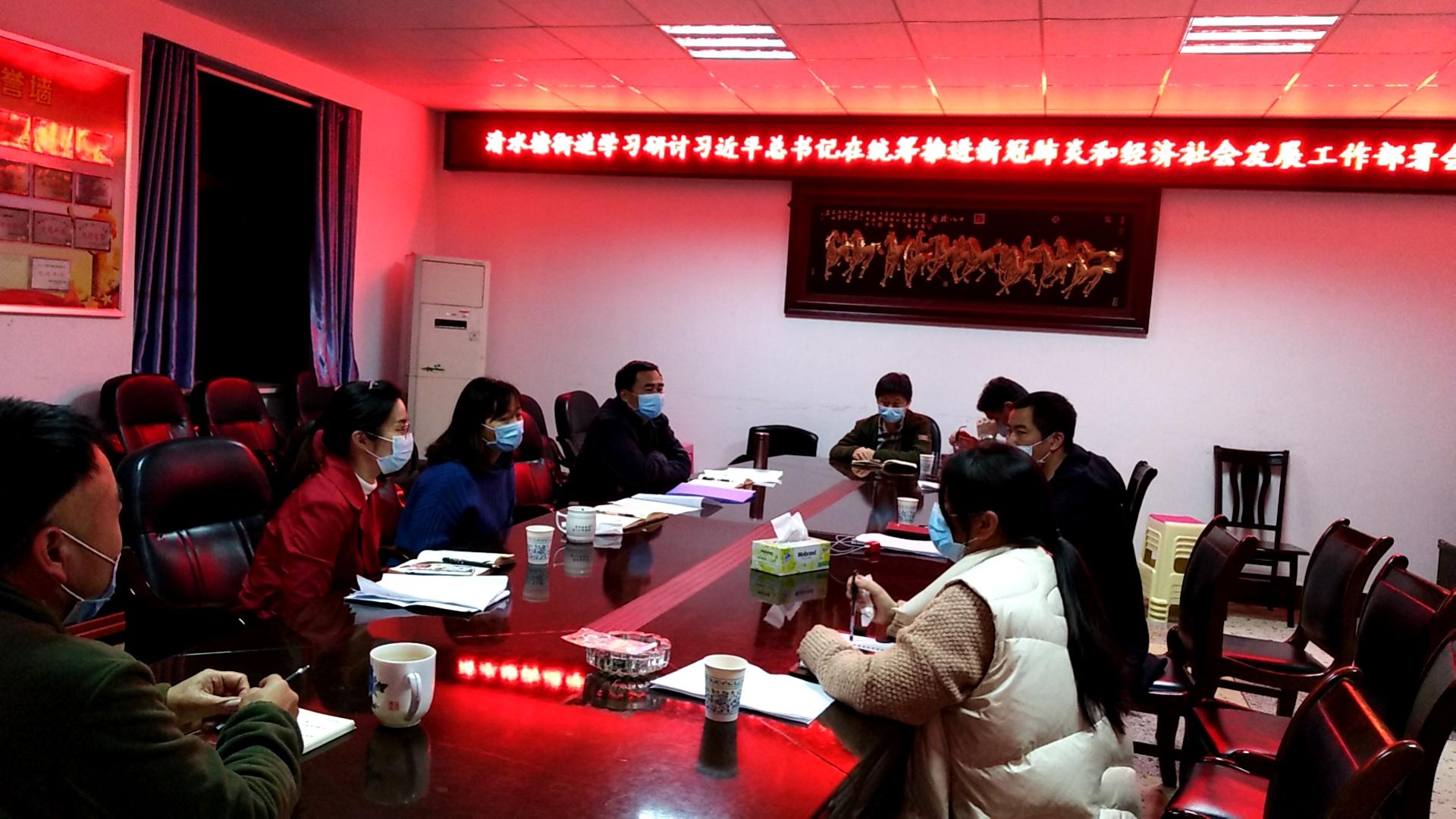 2月27日18:00,清水塘街道召开党政联席会,专题学习研讨习近平总书记在统筹推进新冠肺炎疫情防控和经济社会发展工作部署会议上的讲话精神,全体党政班子成员参会。